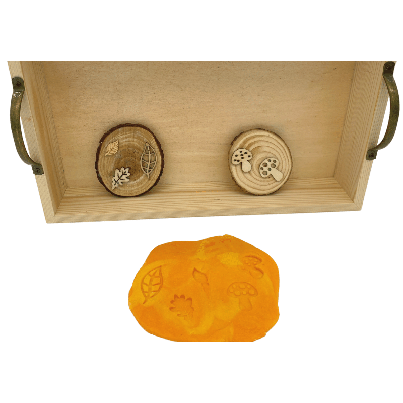 These nature themed wood play dough stamps can be used with play dough to help with fine motor skills and hand to eye coordination. These round, flat stamps specifically encourage the palmer grasp. Perfect for small hands (2.4″ – 2.8″ round/.25″ – . 375″ thick).