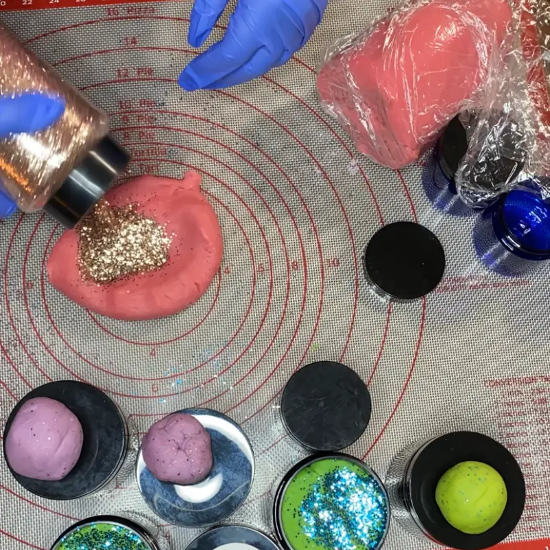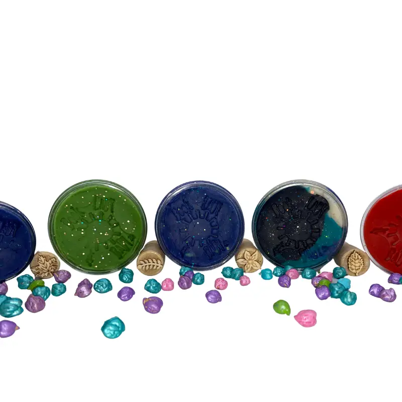 The scents and colors along with the glitter awaken your senses and ignite creativity and playfulness! These wonderful handmade play dough varieties are extremely squishy and stay fresh longer than store bought play dough. To rehydrate, just add water!